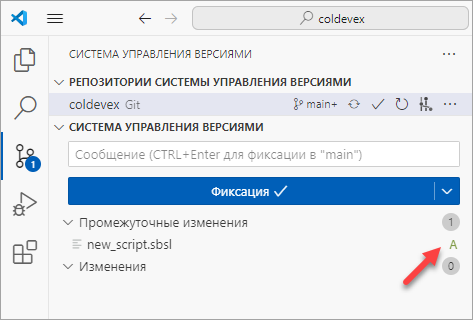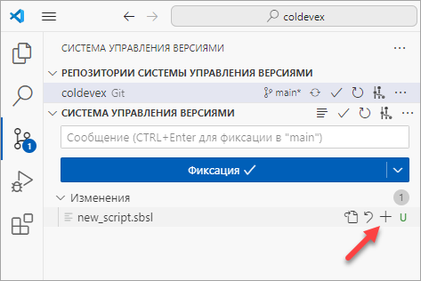 Предположим, вы добавили в свой проект новый файл, new_script.sbsl. Если этого файла раньше не было, вы увидите свой неотслеживаемый файл вот так: