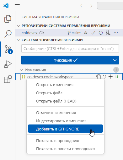 Чтобы проигнорировать файл coldevex.code-workspace выполните следующие действия: