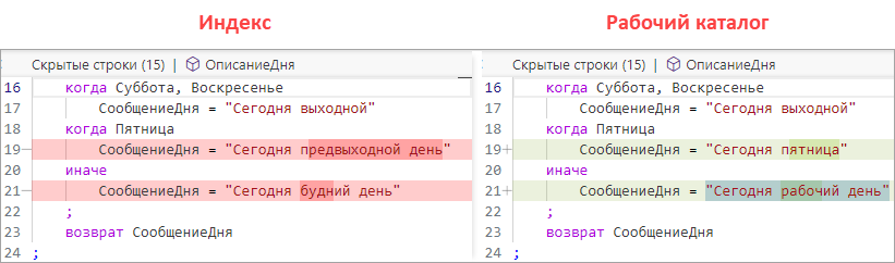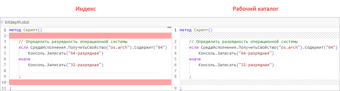Теперь посмотрите другой пример. Вы уже проиндексировали файл bitdepth.sbsl, но решили внести в него дополнительные изменения. В этом случае вы можете просмотреть как проиндексированные изменения в этом файле, так и те, что пока не проиндексированы.