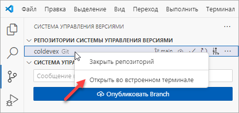 В примере, когда вы создавали репозиторий, таким файлом является файл рабочей области coldevex.code-workspace, который создала Visual Studio Code.