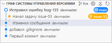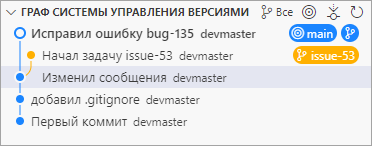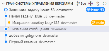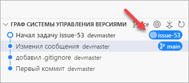 Теперь вы можете переключить ветку, вернуться к работе над своей задачей № 53 и продолжить работу над ней, сделав еще один коммит.