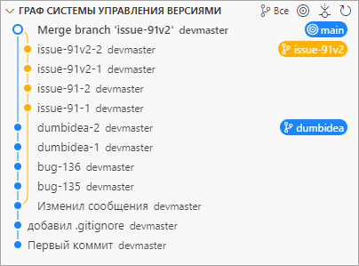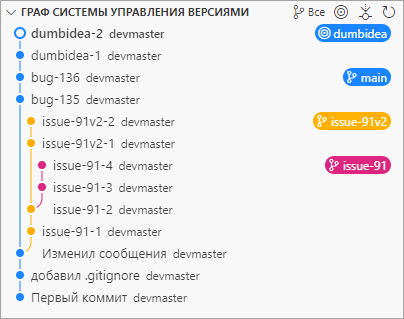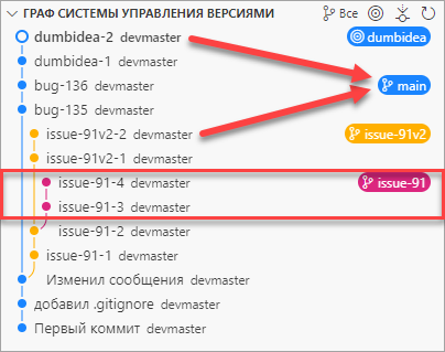 Предположим, вам больше нравится второй вариант решения задачи (issue-91v2), а ветку dumbidea вы показали коллегам, и оказалось, что там содержится гениальная идея.