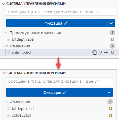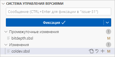 Например, вы перешли в свой проект, начали работать над задачей и, возможно, добавили в индекс какие-то изменения. Если вы откроете раздел Система управления версиями (Source Control), то увидите ваше измененное состояние: