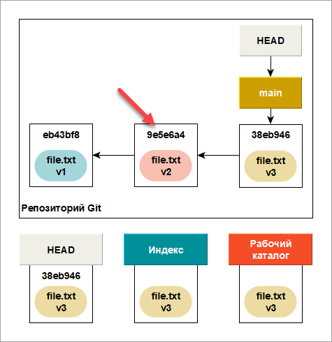 В данном конкретном случае, версия v3 нашего файла все еще остается в коммите внутри базы данных Git и вы можете вернуть ее, но если вы не зафиксировали эту версию, Git перезапишет файл и ее уже нельзя будет восстановить.