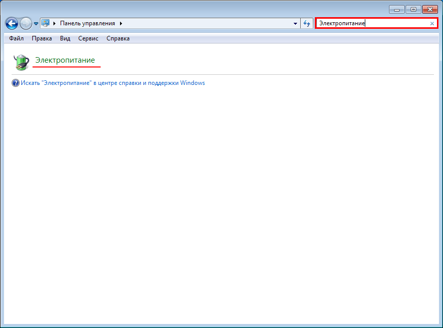 и выберите компонент Панель управления. В поле поиска введите Электропитание, а затем в списке результатов выберите пункт Электропитание.