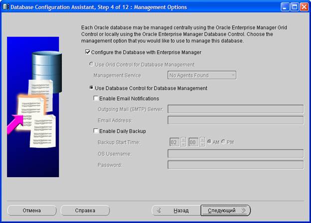 По умолчанию база данных Oracle будет управляться с помощью локального Enterprise Manager.