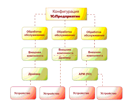 Общая схема взаимодействия системы "1С:Предприятие 8" с торговым оборудованием.