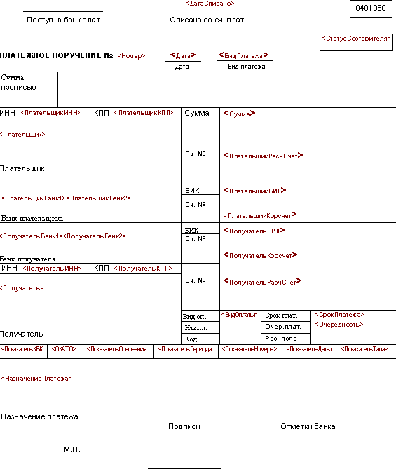 Перечисленные платежные документы изображены ниже. В поля документов вписаны идентификаторы, предусмотренные структурой файлов обмена.