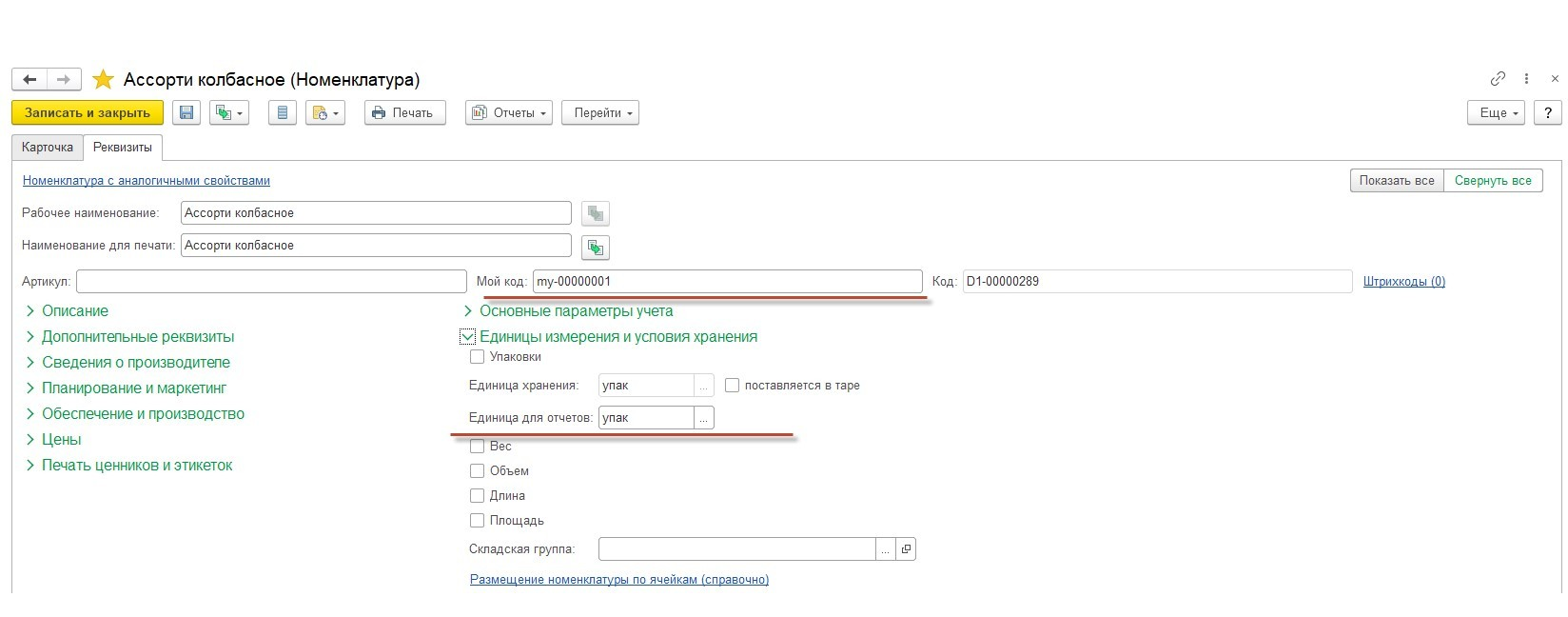 Далее нашей задачей будет добавить в состав синхронизируемых полей два свойства: МойКодКлассификации и ЕдиницаИзмеренияОтчетов, при этом, реквизит МойКодКлассификации необходимо добавить в ключевые поля.