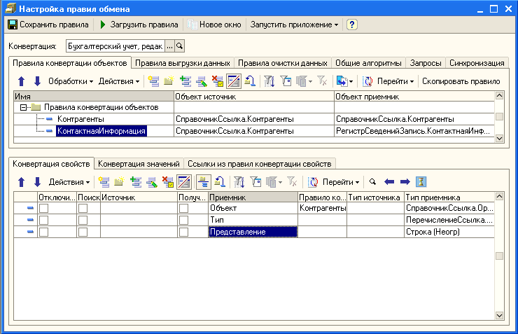 Формируем правила конвертации для регистра сведений