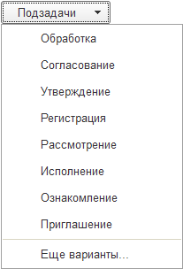 При создании процесса на основании задачи из меню Подзадачи предмету присваивается роль Вспомогательный. Если процесс создается по шаблону с предметами, то роль определяется шаблоном.