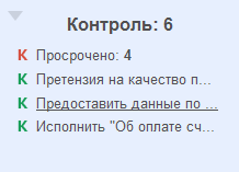 Для некоторых виджетов определены показатели. Показатели – это характеристики сигналов, на которые пользователю необходимо отреагировать. Например, количество новых писем, задач и т. д.