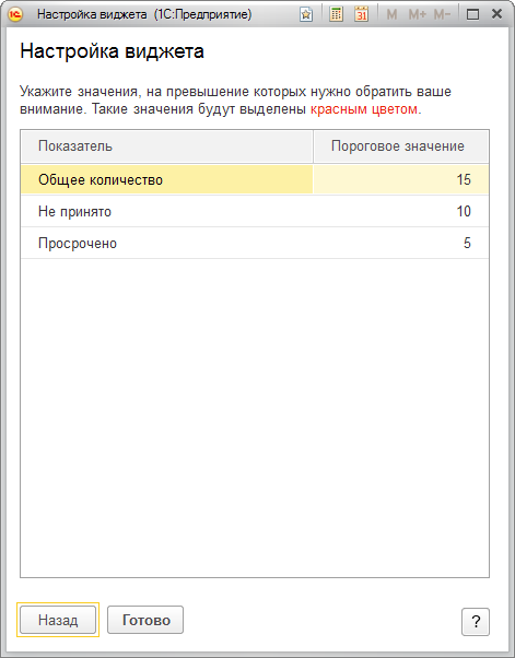 Настройка пороговых значений показателей виджета "Задачи мне":