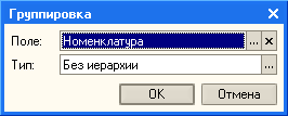 Для начала, посмотрим, как будет выглядеть отчет без иерархии. В настройках отчета добавляем группировку по полю Номенклатура. Тип иерархии оставляем без изменения.