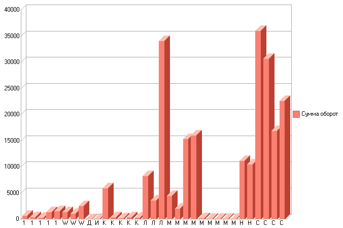 В данной диаграмме в точках выдается группировка по полю Номенклатура.