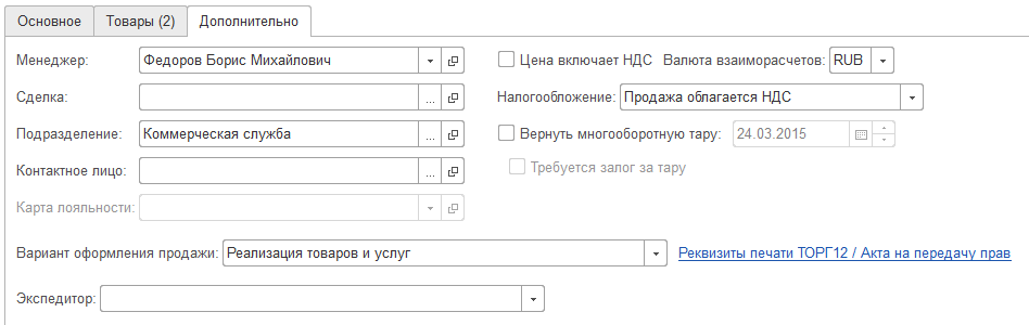 1. Большинство реквизитов во вкладке "Дополнительно" после применения обработки выровнены по опорной линии. Необходимо выровнять два последних поля ("Вариант оформления продажи" и "Экспедитор").