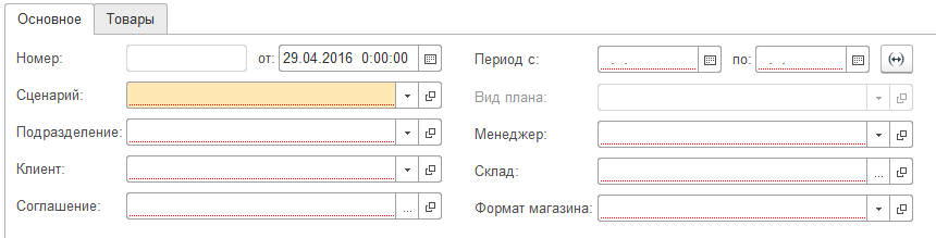 (Рассмотрено на примере формы "План продаж по номенклатуре".) Особенно хорошо проблема видна при использовании реквизитов шапки, разделенных на левый и правый блоки. При детальном обзоре видно несоответствие полей левого и правого блоков: