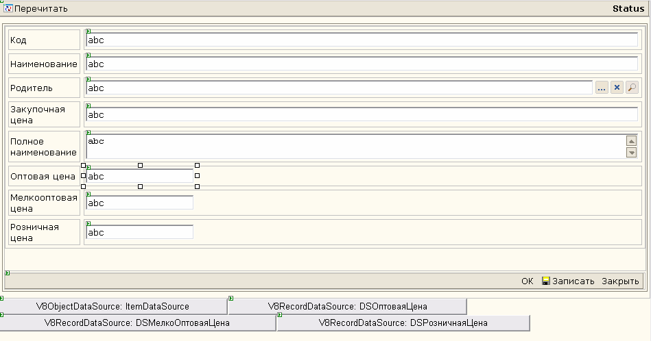 Таким образом, мы связали поля ввода (V8TextBox) с источниками данных (V8RecordDataSource).