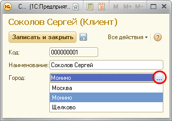 Элементы.Город.СписокВыбора.Добавить("Монино");