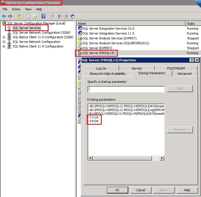 После применения всех настроек перезапустить службы Microsoft SQL Server.