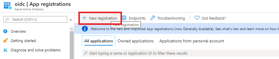 Для быстрого перехода к настройке Azure AD нажмите на ссылку «Here» информационного сообщения.