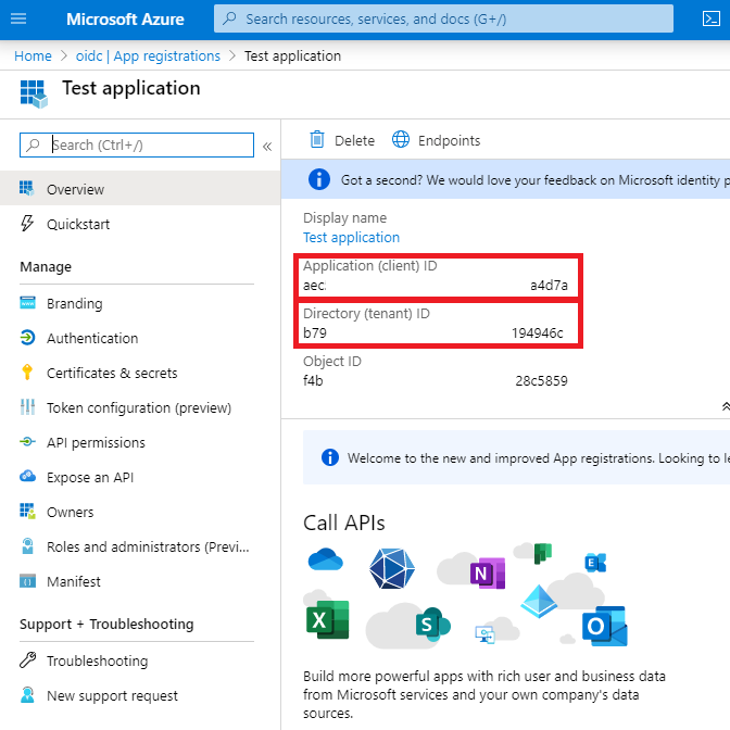 Процесс настройки приложения провайдера маркеров доступа завершен. При переходе к обзору созданного приложения скопируйте следующие поля, которые потребуются для настроек Open ID Connect подключения системы 1С:Предприятие: