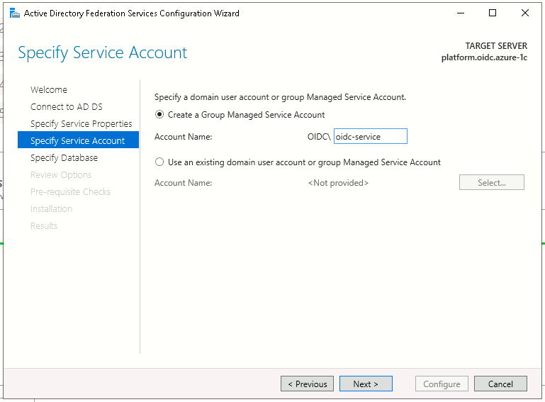 После установки компонентов в открывшемся окне предупреждения консоли сервера необходимо нажать на «Configure the federation service on this server».