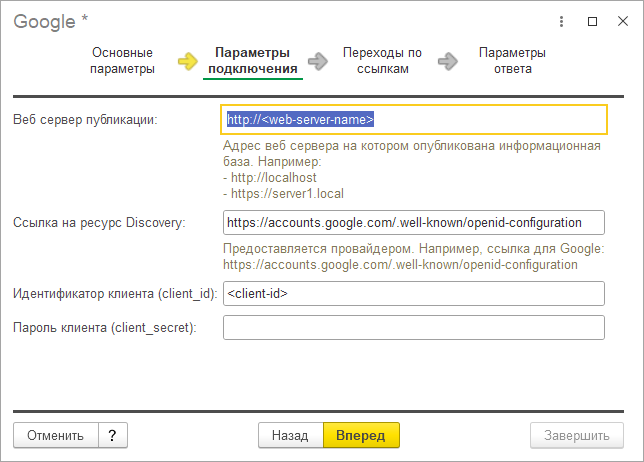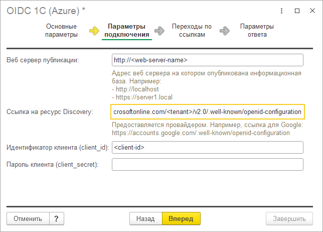 Для упрощения настройки OpenID Connect рекомендуем воспользоваться обработкой. Обработка работает с файлом публикации информационной базы (файл c расширением VRD). С помощью обработки можно настроить только секцию Providers.