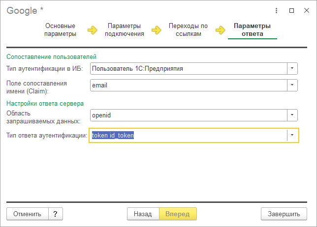 Обратите внимание, что до версии платформы 8.3.22 поддерживается только поток авторизации "Implicit flow". Поэтому если вы используете версию 8.3.21 и младше, то на следующем шаге выберите флаг "Implicit flow".