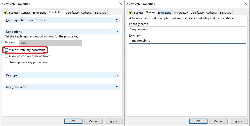 Отроется окно «Свойства сертификата» («Certificate Properties»), в котором необходимо: