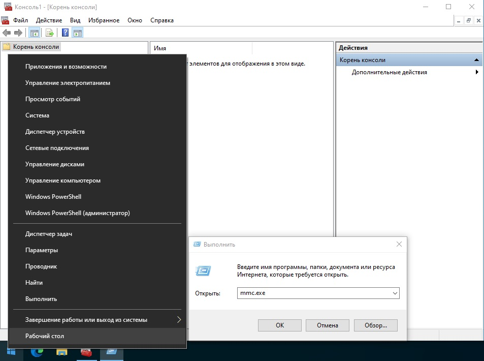 Для этого необходимо открыть консоль управления (mmc.exe):