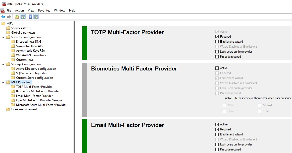 Далее необходимо выбрать раздел «MFA Providers» («Провайдеры MFA») для настройки способов аутентификации.