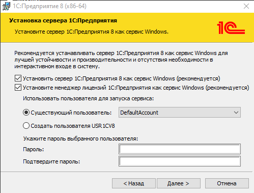 - Если используется сетевой ключ защиты и Hasp License Manager, то требуется установка приложения «1С:Предприятие 8 – Менеджер Лицензий» (rmlic) и регистрация его в качестве сервиса.