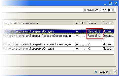 Существует еще один вариант устранения этой взаимоблокировки. Блокировки, устанавливаемые процессом 1 (документ "РеализаяТоваровУслуг"), возникают только при работе в автоматическом режиме. Характерным признаком таких блокировок является значение поля режим = "Range…":