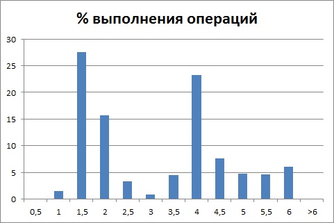 В результате анализа распределения времени выполнения операции, видим за какое время чаще всего выполняется операция.