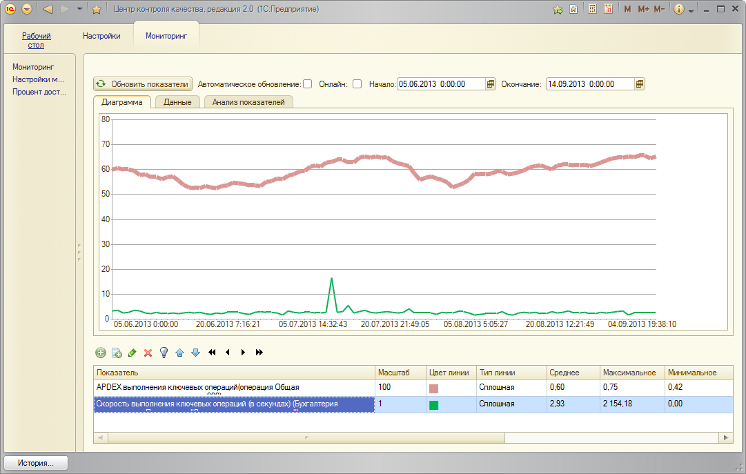 В ЦКК в подсистеме Мониторинга также возможно добавить один или несколько показателей производительности Apdex