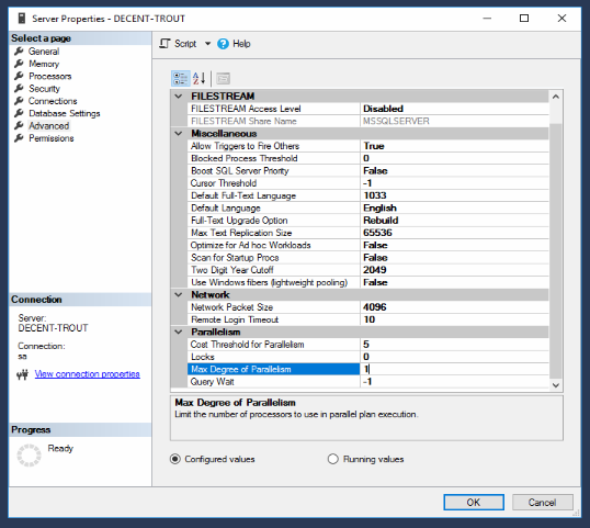 *мы рекомендуем отключать параллелизм для OLTP-нагрузки (оперативный учет у нас всегда OLTP).