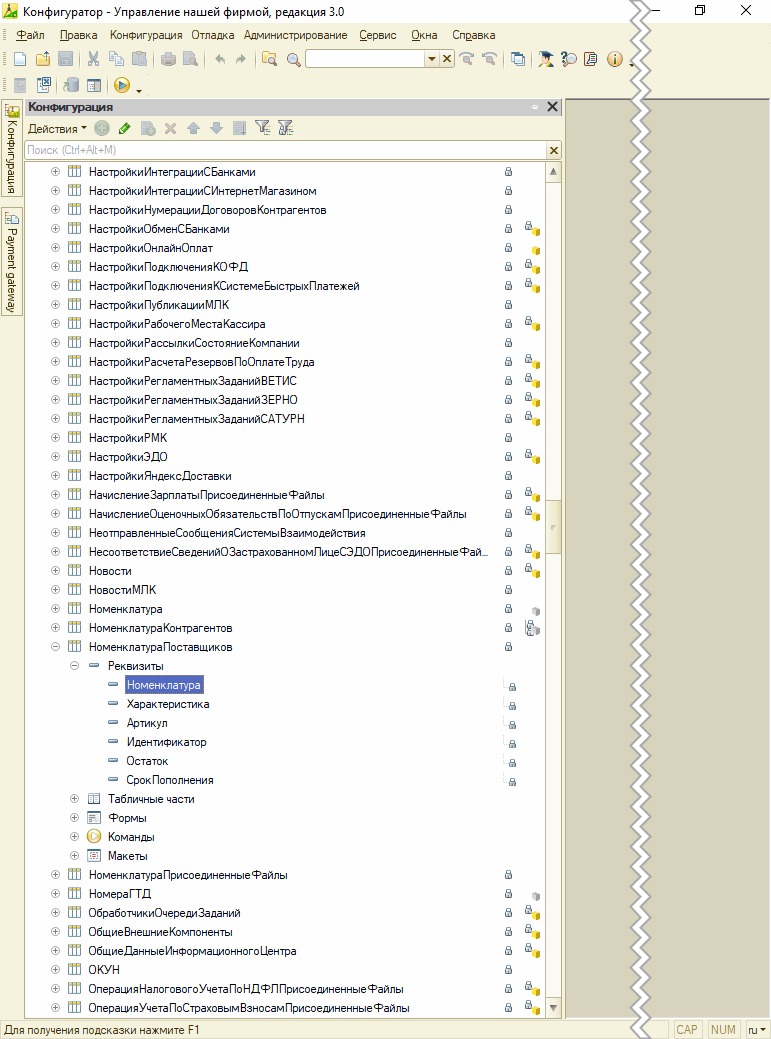 Рис. 13. Реквизиты справочник Номенклатура поставщиков