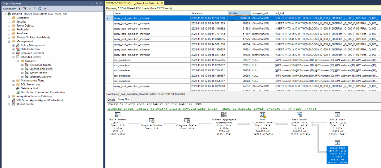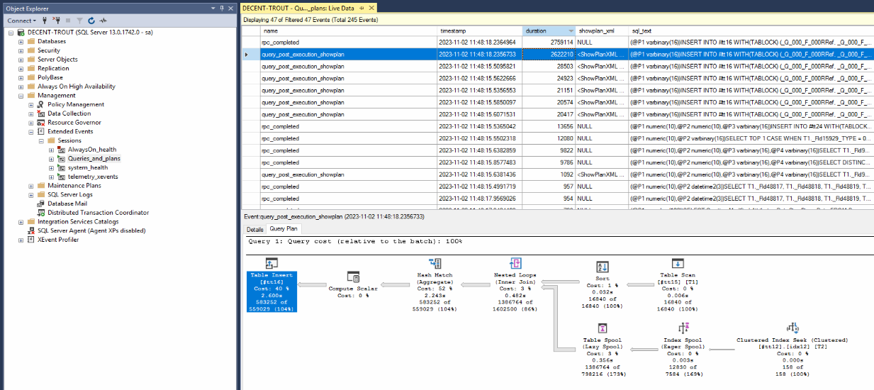 Трассировкой определяю планы запроса.
