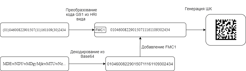 | ЗначениеКода (CodeValue)) | Строка | + | + | Строка или Base64 Строка (см. свойство ТипВходныхДанных) содержащая данные генерируемого ШК |
