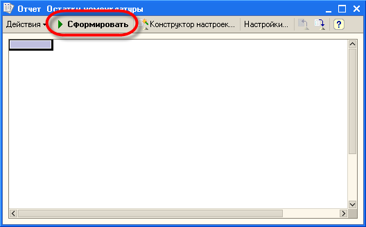 На экране отобразится форма отчета. В верхней части формы расположена командная панель отчета. Все остальное пространство занимает табличный документ, в который будет выводиться результат отчета.