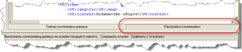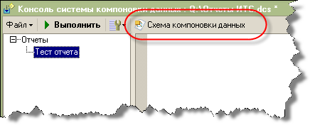 Если в конфигурации уже имеется готовая схема компоновки данных, то эту схему можно перенести в консоль компоновки, сохранив ее в конфигураторе в файл и загрузив ее из файла в конструкторе схемы компоновки данных, открытого из консоли.