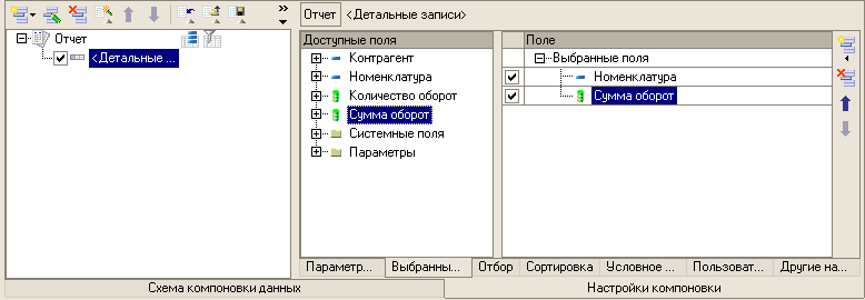 Отметим также, что при необходимости, можно модифицировать сгенерированный макет компоновки данных и, воспользовавшись командой "Выполнить компоновку данных на основе текущего макета", сформировать отчет на основании модифицированной схемы.