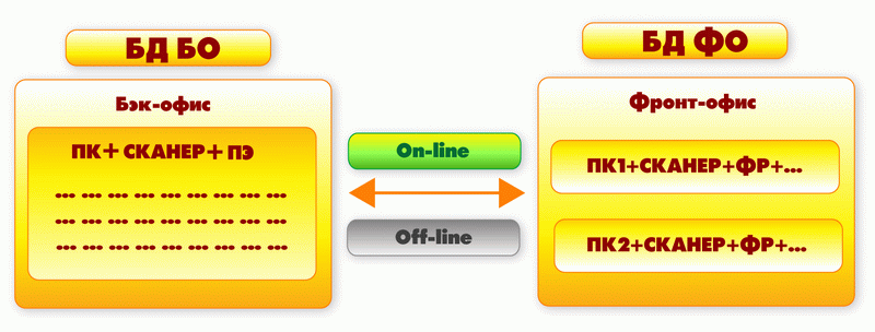 Бэк-офис и фронт-офис работают в двух информационных базах.
