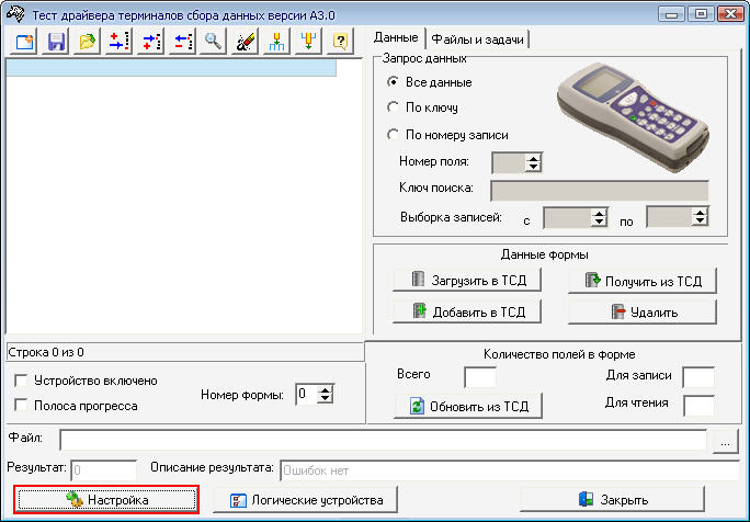 Если параметры порта неизвестны, то можно воспользоваться утилитой тестирования из поставки драйвера - "Тест драйвера ТСД версии А3.0", выбрав форму "Настройка".